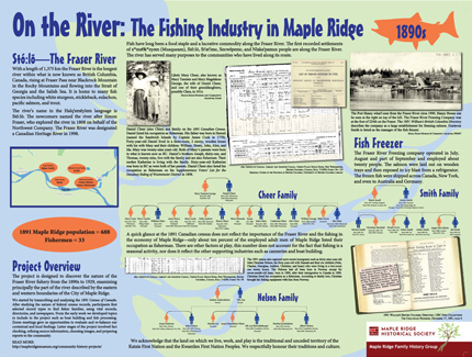 On the River: The Fishing Industry in Maple Ridge Design of 4 display boards with the Fraser River as the connecting visual through all four boards.